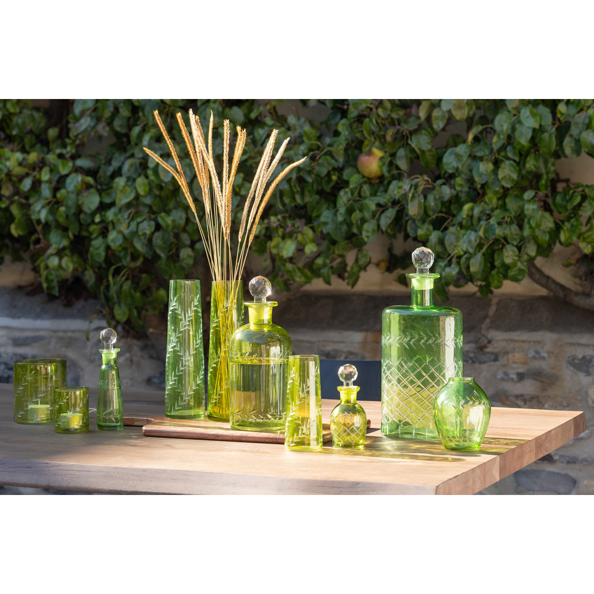 ΚΑΡΑΦΑ ΣΚΑΛΙΣΤΗ LEAVES ΓΥΑΛΙΝΗ ΠΡΑΣΙΝΗ L ASS2 (10x10x25cm)