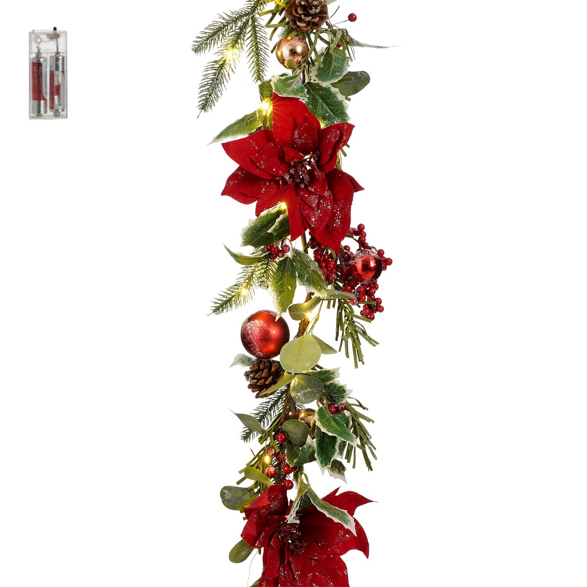 ΓΙΡΛΑΝΤΑ ΑΛΕΞΑΝΔΡΙΝΟ ΚΟΚΚΙΝΟ ΠΑΓΩΜΕΝΟ 20 led ΜΠΑΤΑΡΙΑΣ L150 w15 h10cm