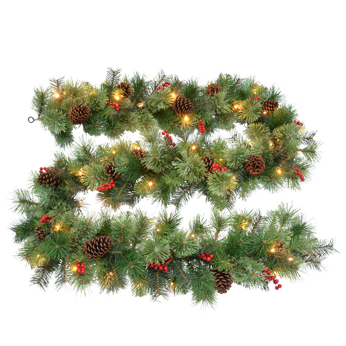 ΓΙΡΛΑΝΤΑ ΠΕΥΚΟΥ 30led ΜΕ ΓΚΙ ΠΡΑΣΙΝΟ Warth TIPS 120 battery operated - L180 d25cm pvc/hardneedle