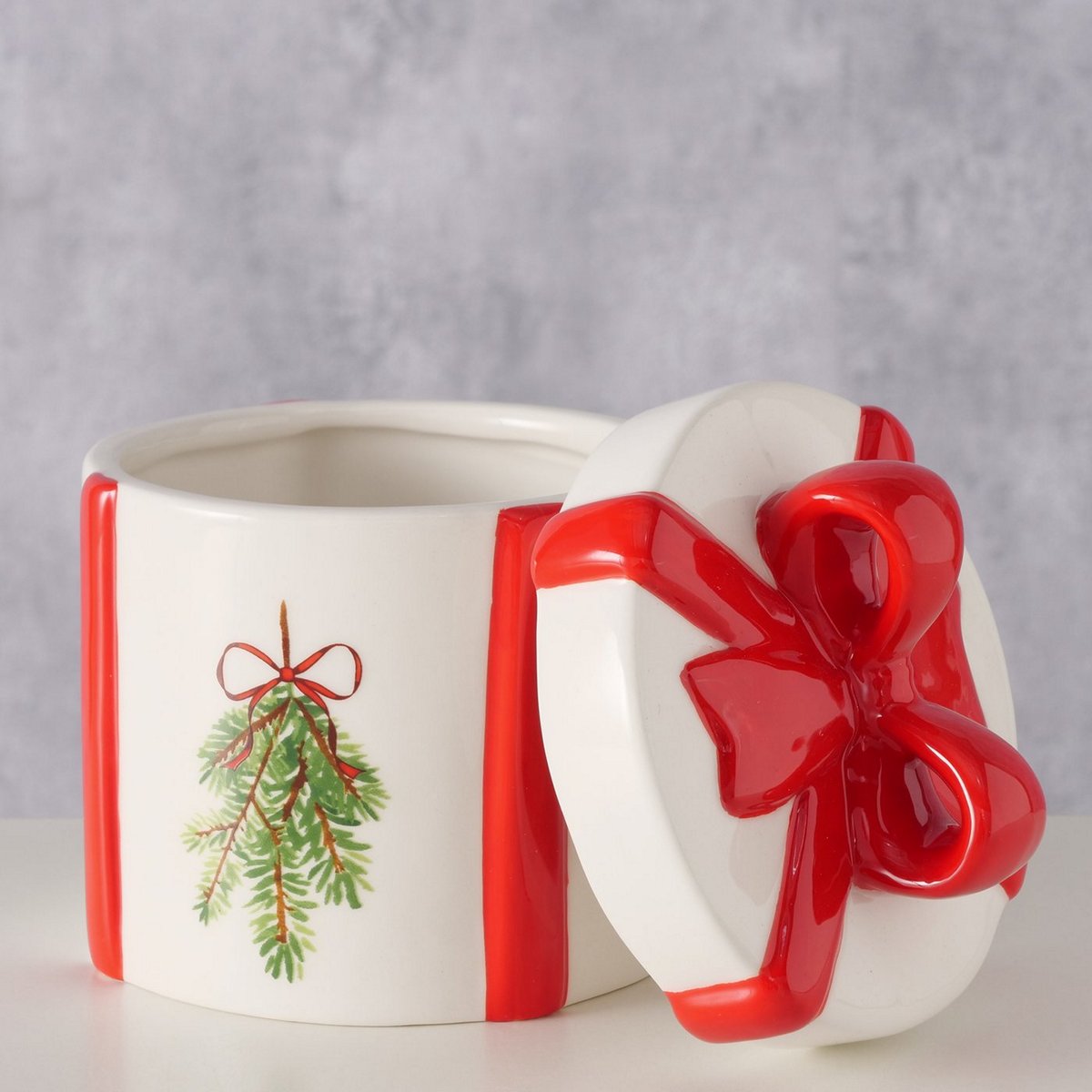 ΔΟΧΕΙΟ ΑΠΟΘΗΚΕΥΣΗΣ ΛΕΥΚΟ, ΦΙΟΓΚΟ ΚΟΚΚΙΝΟ ΚΑΙ ΓΚΙ ΜΕ ΕΛΑΤΟ Noelle H13cm D10cm ΚΕΡΑΜΙΚΟ