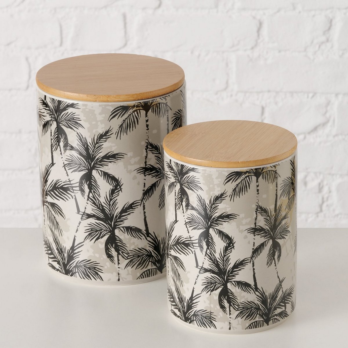 ΔΟΧΕΙΟ ΑΠΟΘΗΚΕΥΣΗΣ ΣΧΕΔΙΟ ΦΟΙΝΙΚΑΣ Palma ΠΡΑΣΙΝΟ ΜΑΥΡΟ H19cm D14cm Bamboo ΚΑΠΑΚΙ 20-36-329