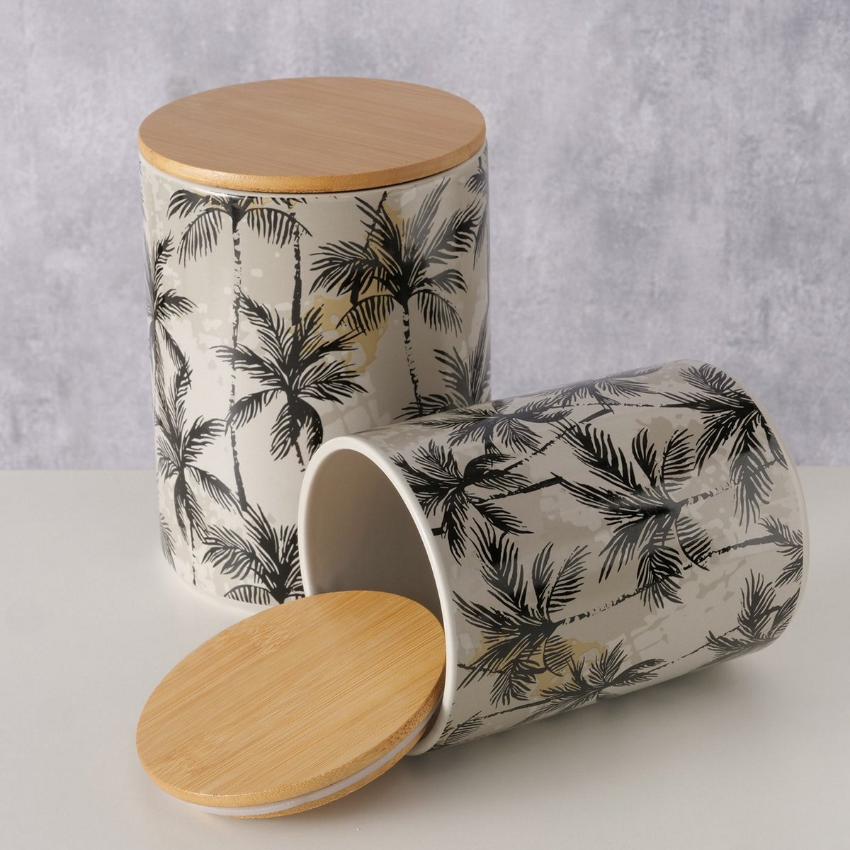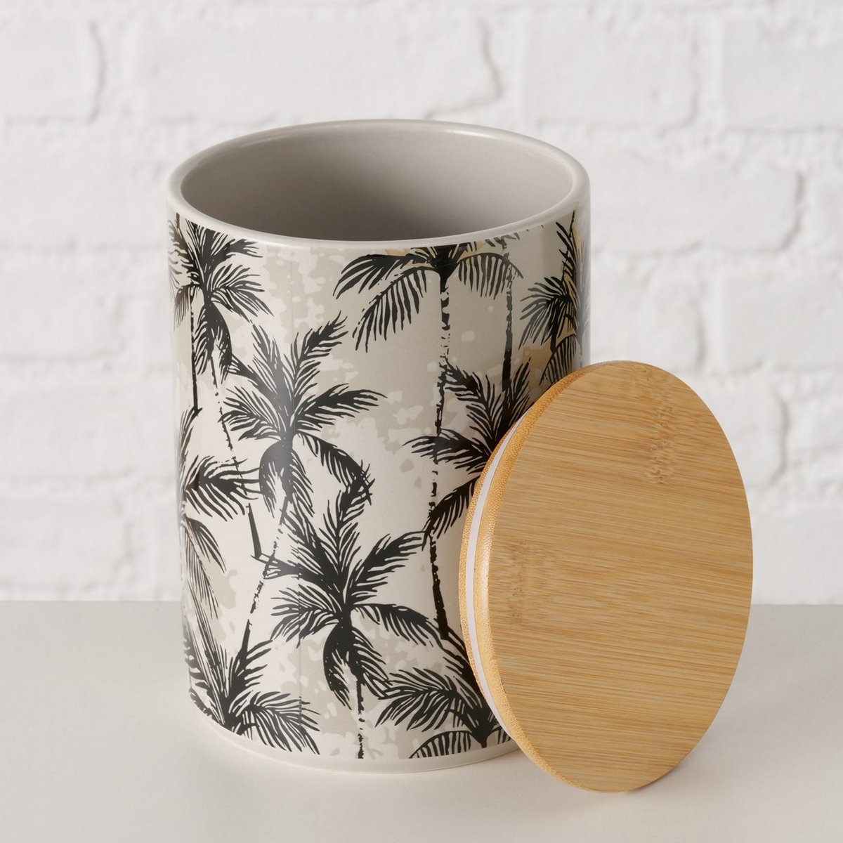 ΔΟΧΕΙΟ ΑΠΟΘΗΚΕΥΣΗΣ ΣΧΕΔΙΟ ΦΟΙΝΙΚΑΣ Palma ΠΡΑΣΙΝΟ ΜΑΥΡΟ H16cm D12cm Bamboo ΚΑΠΑΚΙ 20-26-329