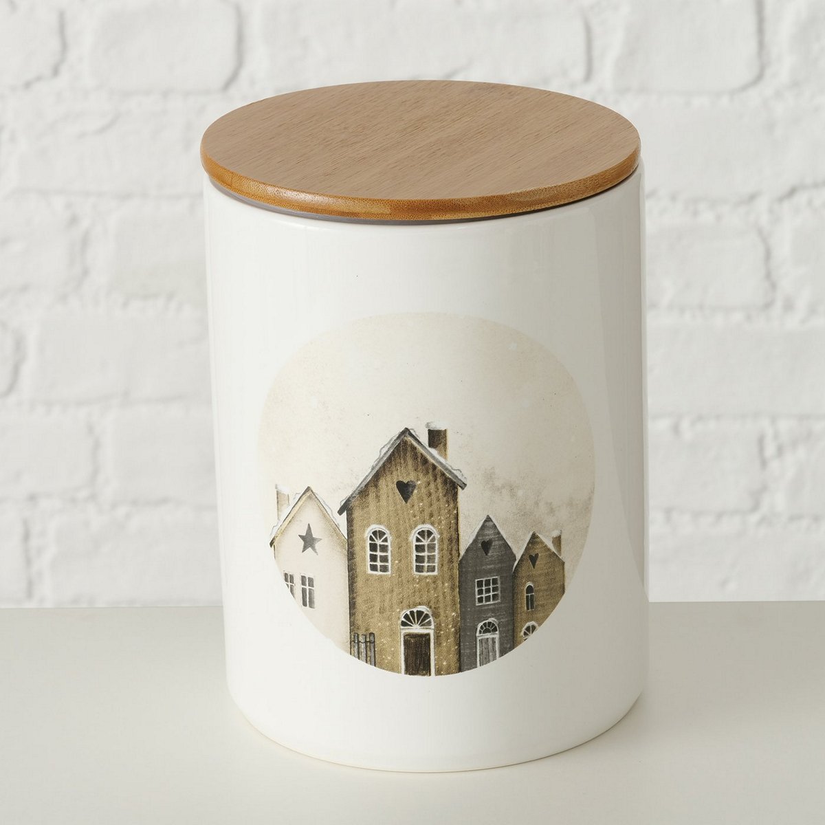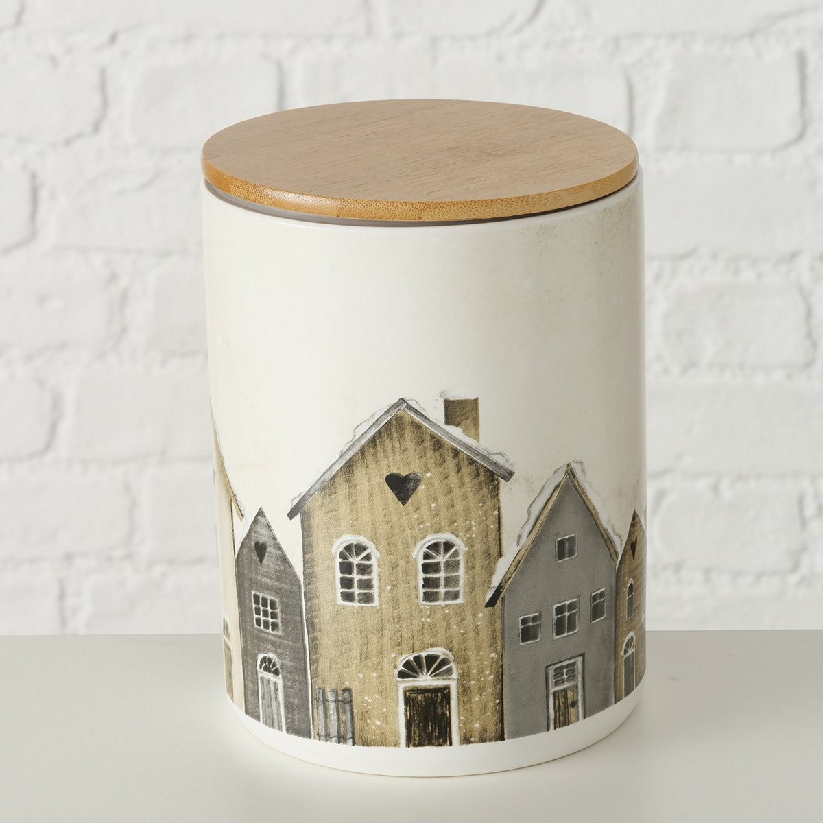 ΔΟΧΕΙΟ ΑΠΟΘΗΚΕΥΣΗΣ 2/ass ΣΧΕΔΙΟ ΣΠΙΤΙΑ Houses H23cm D14cm Bamboo ΚΕΡΑΜΙΚΟ 20-23-005