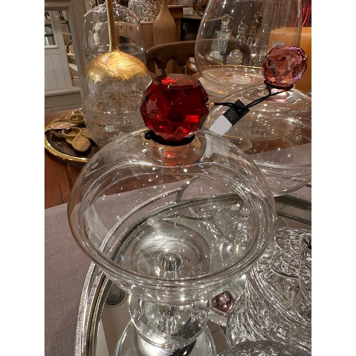 ΔΟΧΕΙΟ ΑΠΟΘΗΚΕΥΣΗΣ DIAMOND CRYSTAL ΓΥΑΛΙΝΟ ΜΕ ΚΑΠΑΚΙ ΚΟΚΚΙΝΟ (14x14x25cm)