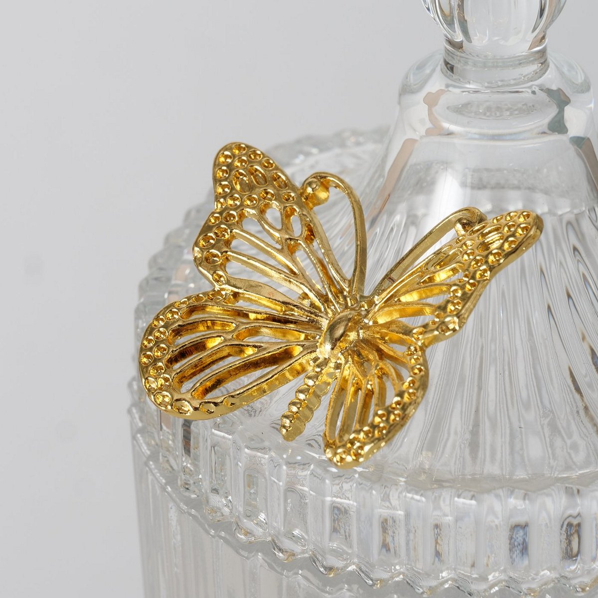 ΔΟΧΕΙΟ ΜΕ ΚΑΠΑΚΙ Farfalla ΔΙΑΦΑΝΕΣ ΓΥΑΛΙ ΜΕ ΧΡΥΣΗ ΠΕΤΑΛΟΥΔΑ H17cm D10,5cm