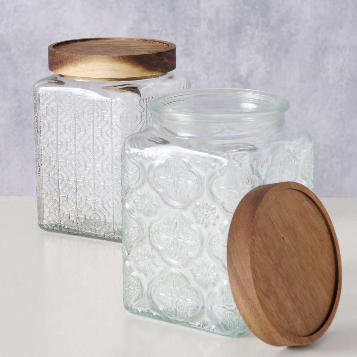 ΔΟΧΕΙΟ 2/ass ΑΠΟΘΗΚΕΥΣΗΣ 800ml ΓΥΑΛΙ ΔΙΑΦΑΝΕΣ ΚΑΠΑΚΙ ΞΥΛΟ ΑΚΑΚΙΑΣ Ranur 10Χ10Χ15cm