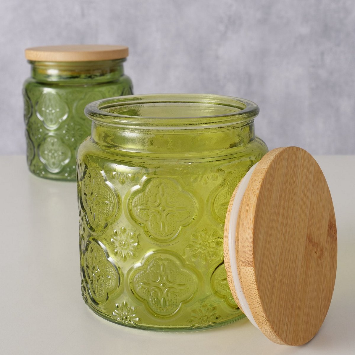 ΔΟΧΕΙΟ 2/ass ΑΠΟΘΗΚΕΥΣΗΣ Imola 500ml H11cm D10cm ΓΥΑΛΙ ΠΡΑΣΙΝΟ Bamboo ΚΑΠΑΚΙ