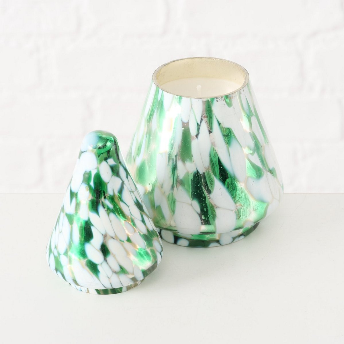 ΚΕΡΙ ΣΕ ΔΕΝΤΡΟ ΓΥΑΛΙΝΟ ΠΡΑΣΙΝΟ ΛΕΥΚΟ H17,5 D10cm Dotti ΠΑΡΑΦΙΝΗ
