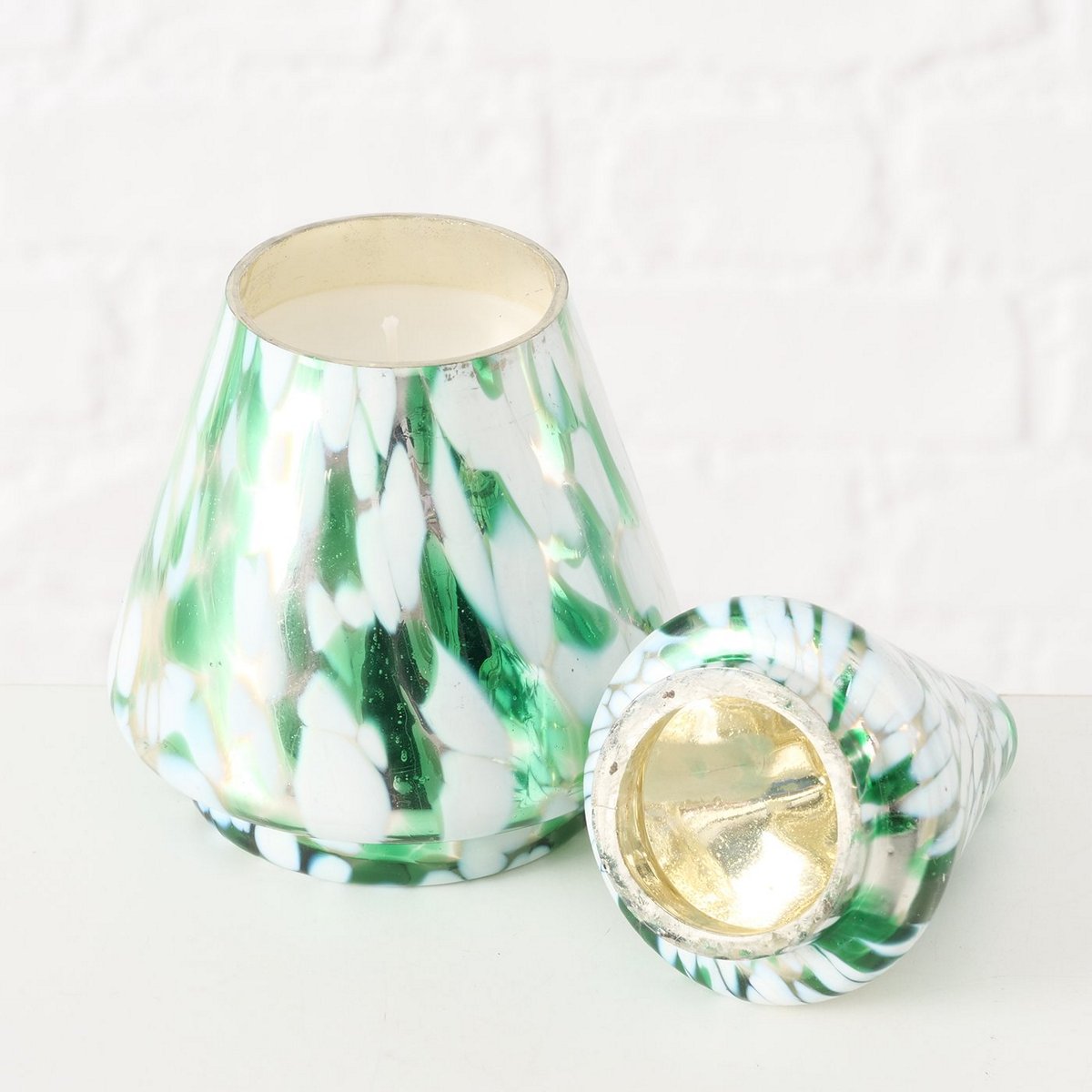 ΚΕΡΙ ΣΕ ΔΕΝΤΡΟ ΓΥΑΛΙΝΟ ΠΡΑΣΙΝΟ ΛΕΥΚΟ H14 D9,50cm Dotti ΠΑΡΑΦΙΝΗ