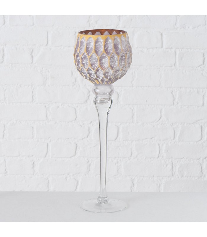 ΚΗΡΟΠΗΓΙΟ ΜΕ ΠΟΔΙ ΣΟΜΟΝ/ΜΠΕΖ Manou H40cm ΓΥΑΛΙ 20-96-176 L0 W0 H40 D12,5cm