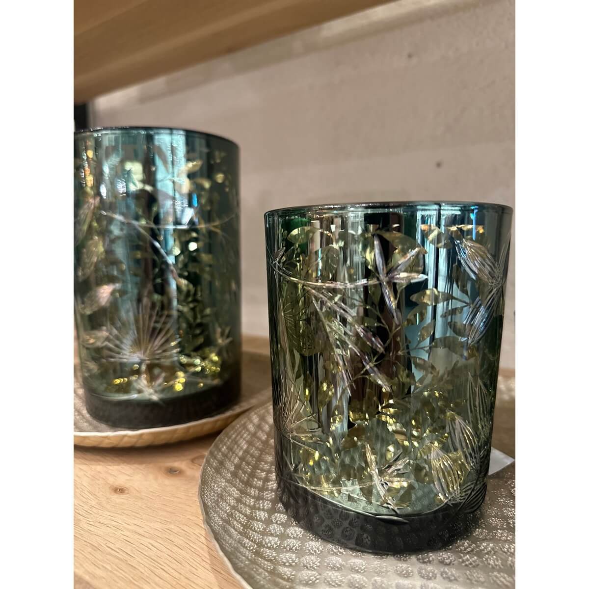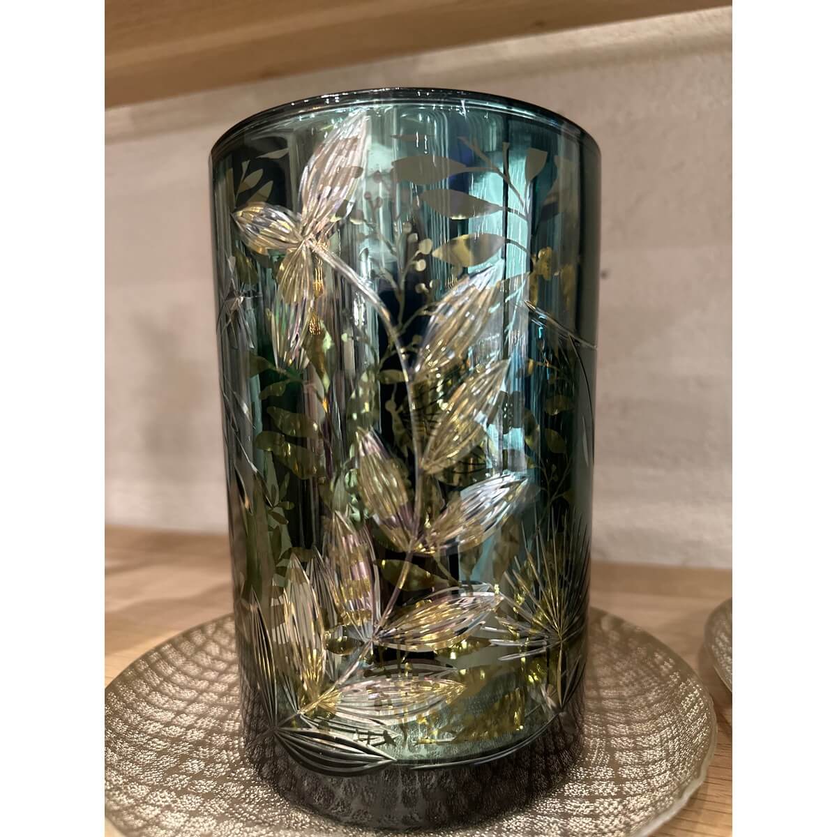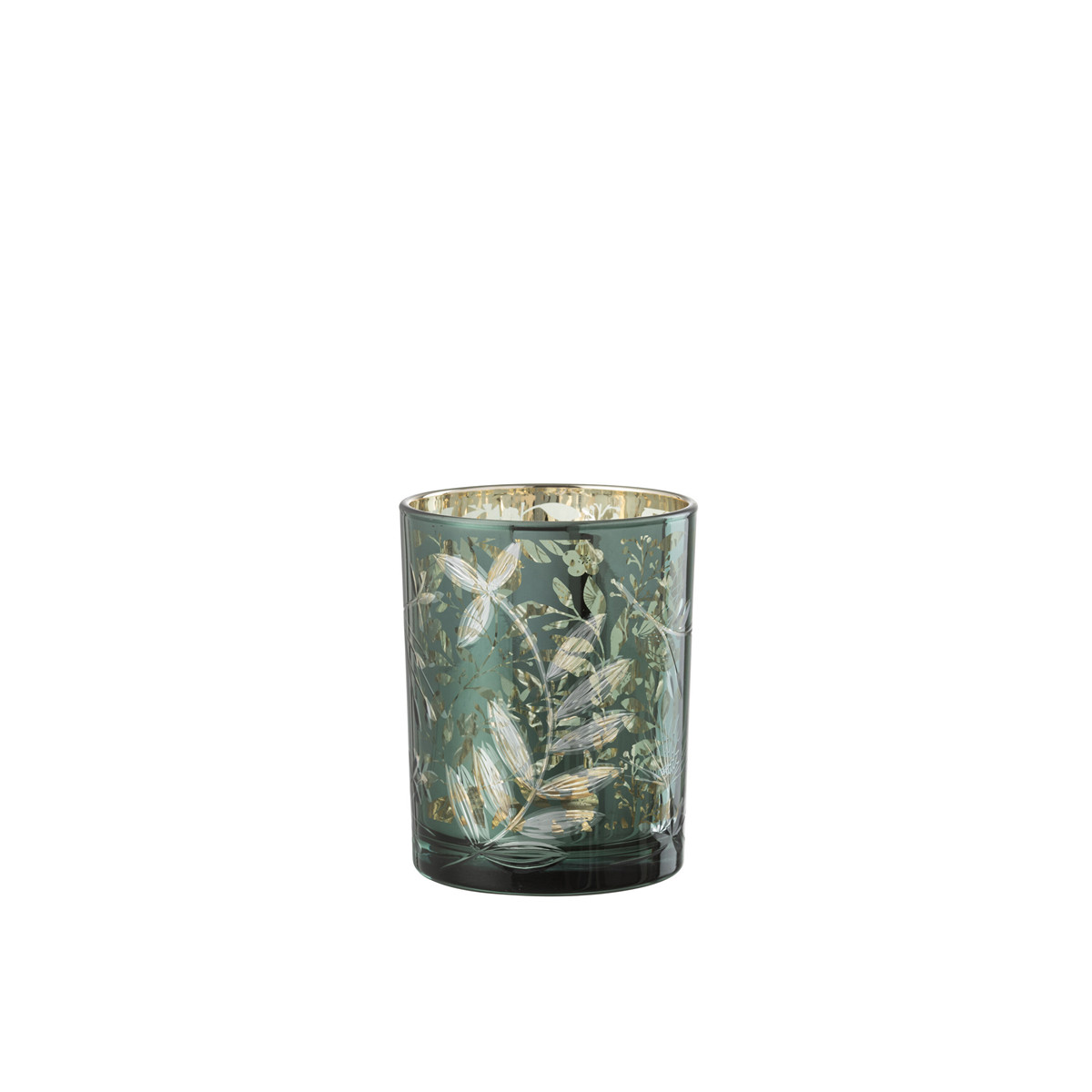 ΚΗΡΟΠΗΓΙΟ ΜΕ ΣΚΑΛΙΣΜΑ LEAVES ΓΥΑΛΙΝΟ ΠΡΑΣΙΝΟ/ΑΝΤΙΚΕ ΧΡΥΣΟ L (12x12x18cm)