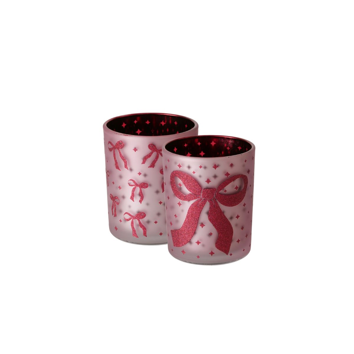 ΚΗΡΟΠΗΓΙΟ 2/ass ΡΟΖ ΜΕ ΚΟΚΚΙΝΗ ΚΟΡΔΕΛΑ Boucle H10,2cm D9cm ΓΥΑΛΙ