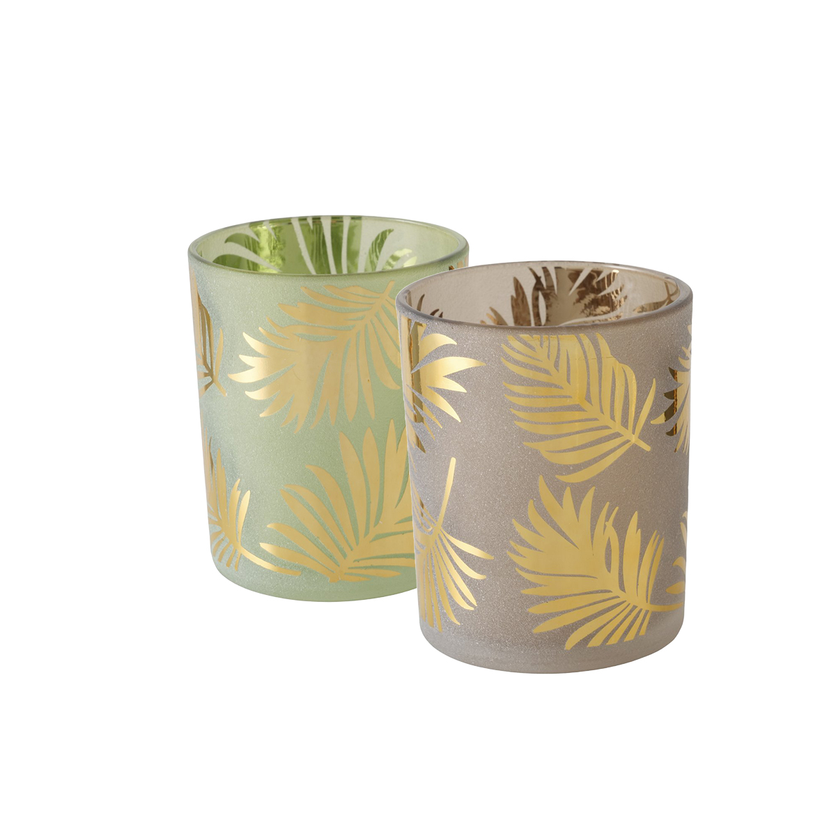 ΚΗΡΟΠΗΓΙΟ 2/ass ΣΧΕΔΙΟ ΦΥΛΛΑ Golden Jungle ΚΑΦΕ ΠΡΑΣΙΝΟ H9cm D7cm ΓΥΑΛΙ Λουλουδάτο 20-26-338