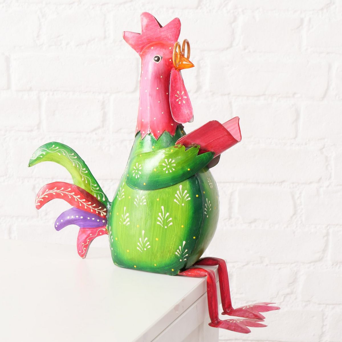 ΚΟΚΚΟΡΑΣ ΚΑΘΙΣΤΟΣ Bruni ΦΙΓΟΥΡΑ ΚΟΚΚΙΝΟ ΠΡΑΣΙΝΟ 34Χ12Χ45cm ΜΕΤΑΛΛΟ