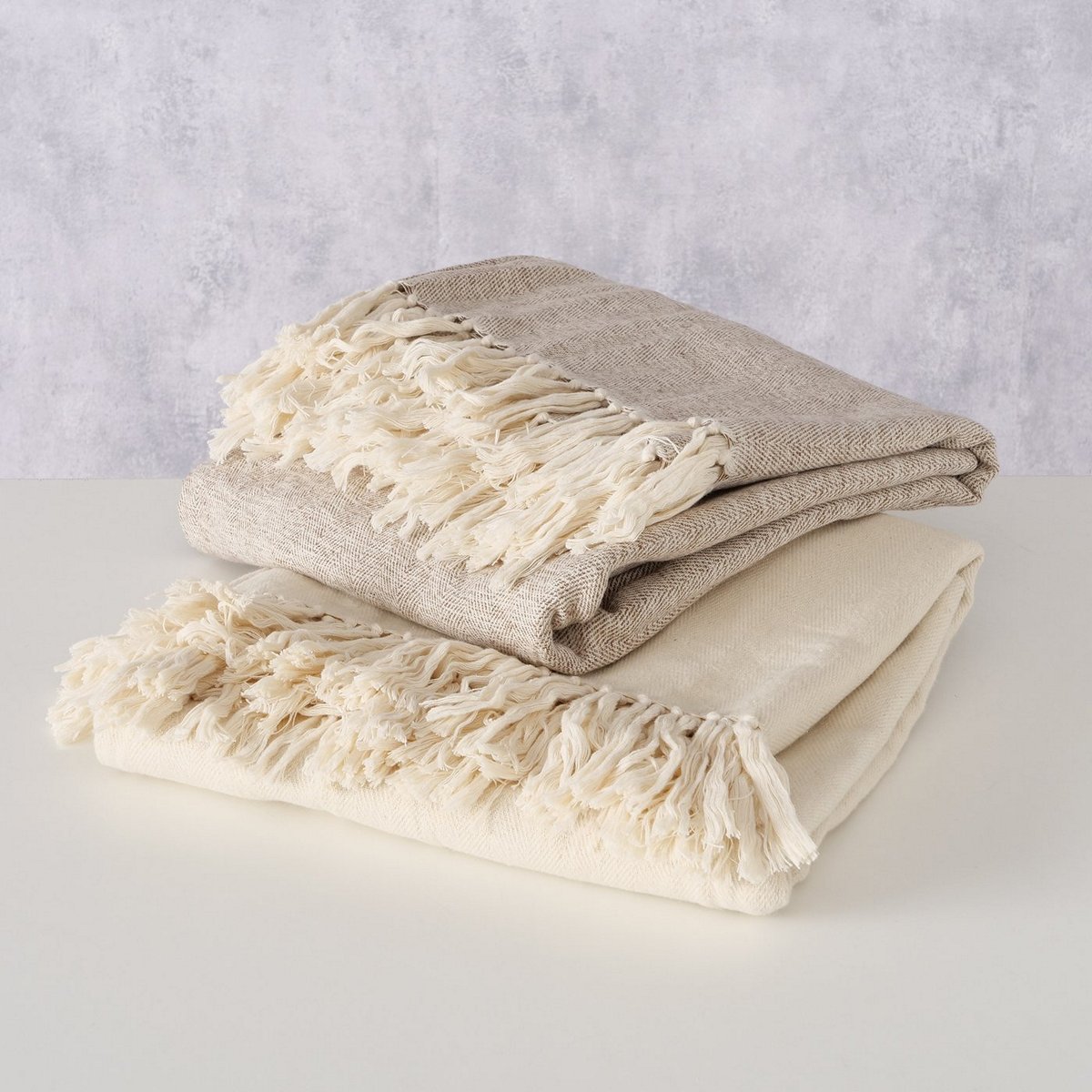 ΚΟΥΒΕΡΤΑ 2/ass Bonneh ΚΡΕΜ/ΓΚΡΙ W140cm Cotton 100%