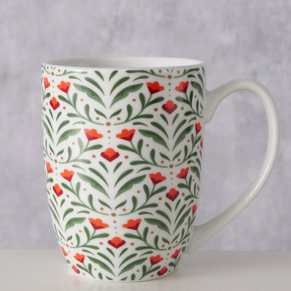 ΚΟΥΠΑ Paris 330ml Λουλουδάτο ΚΟΚΚΙΝΟ ΠΡΑΣΙΝΟ H10,5cm D8,3cm Dishwasher proof ΠΟΡΣΕΛΑΝΗ