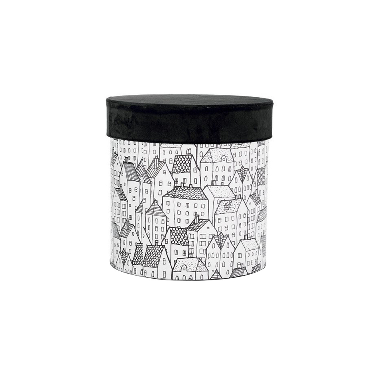 ΚΟΥΤΙ ΚΥΛΙΝΔΡΙΚΟ ΜΑΥΡΟ ΒΕΛΟΥΔΟ ΚΑΠΑΚΙ ΚΑΙ ΣΧΕΔΙΟ ΜΕ ΣΠΙΤΑΚΙΑ ΛΕΥΚΟ D25-H26cm 20-31-132