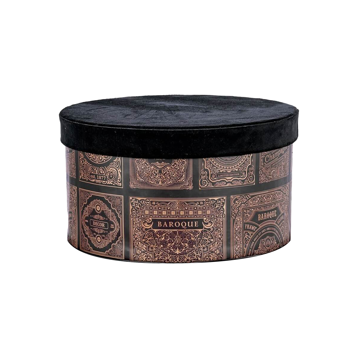 ΚΟΥΤΙ ΣΤΡΟΓΓΥΛΟ ΜΑΥΡΟ ΒΕΛΟΥΔΟ ΚΑΦΕ ΣΧΗΜΑΤΑ D25-Η14,5cm 20-31-142
