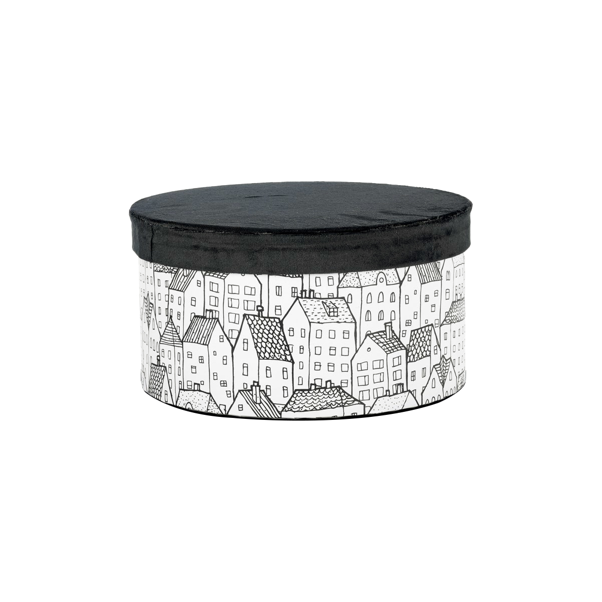 ΚΟΥΤΙ ΣΤΡΟΓΓΥΛΟ ΜΑΥΡΟ ΒΕΛΟΥΔΟ ΛΕΥΚΟ ΜΕ ΣΠΙΤΑΚΙΑ D25-Η14,5cm 20-31-140