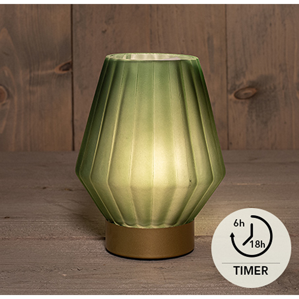 ΛΑΜΠΑ ΕΠΙΤΡΑΠΕΖΙΑ ΠΡΑΣΙΝΟ ΜΑΤ ΓΥΑΛΙ LED BULB 12X17CM ΜΕ ΧΡΥΣΗ ΒΑΣΗ ON/OFF/6H TIMER 2XAAA ΜΠΑΤΑΡΙΑΣ