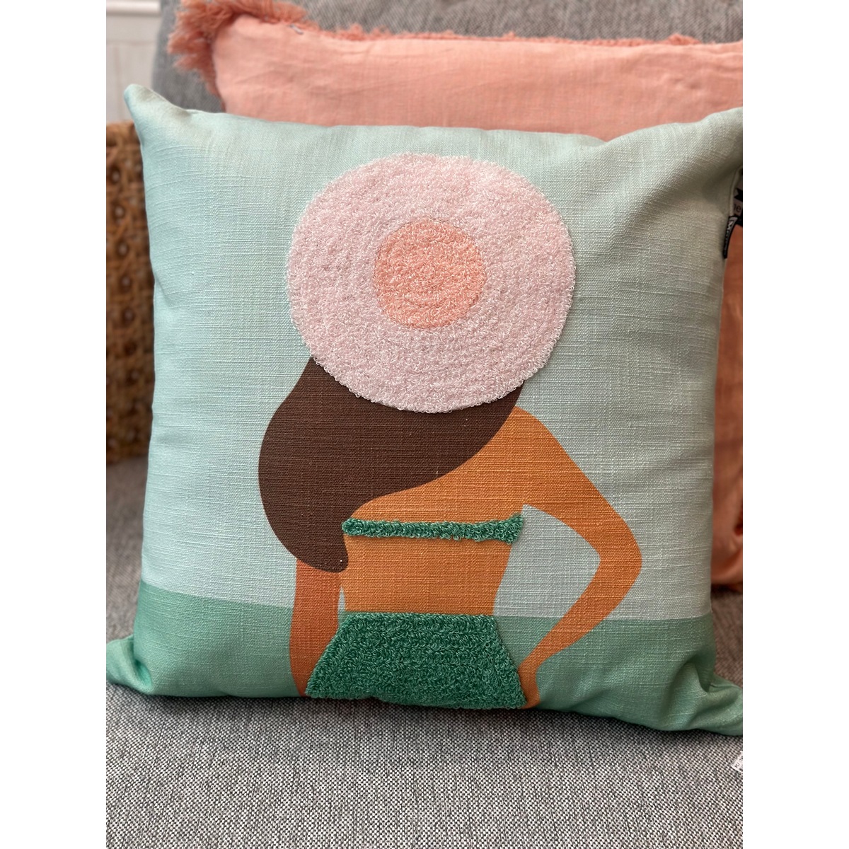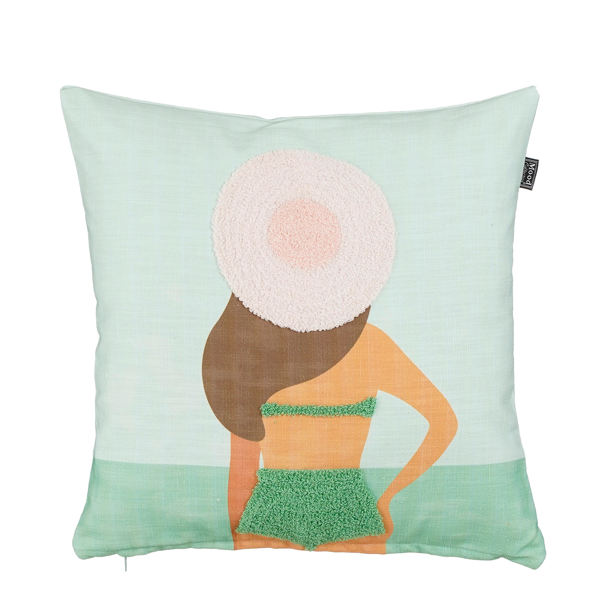 ΜΑΞΙΛΑΡΙ beach ΜΕ ΣΧΕΔΙΟ ΓΥΝΑΙΚΑ ΜΕ ΚΑΠΕΛΟ ΜΩΒ - 45x45x10cm cotton