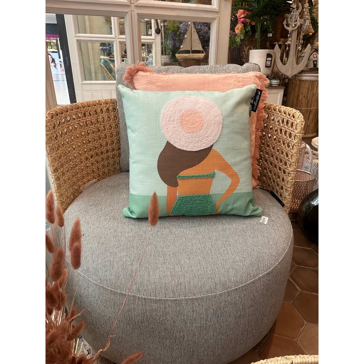 ΜΑΞΙΛΑΡΙ ΒΕΡΑΜΑΝ beach ΣΧΕΔΙΟ ΓΥΝΑΙΚΑ ΜΕ ΚΑΠΕΛΟ ΡΟΖ – 45x45x10cm cotton