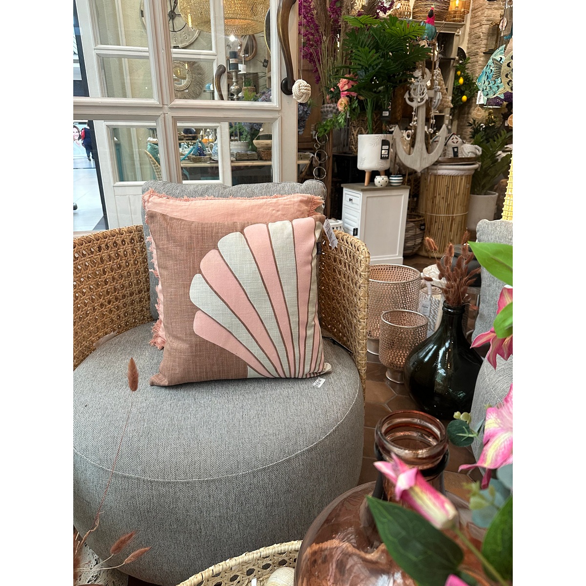 ΜΑΞΙΛΑΡΙ ΚΑΦΕ shell ΜΕ ΣΧΕΔΙΟ ΚΟΧΥΛΙ ΡΟΖ – 45x45x10cm cotton