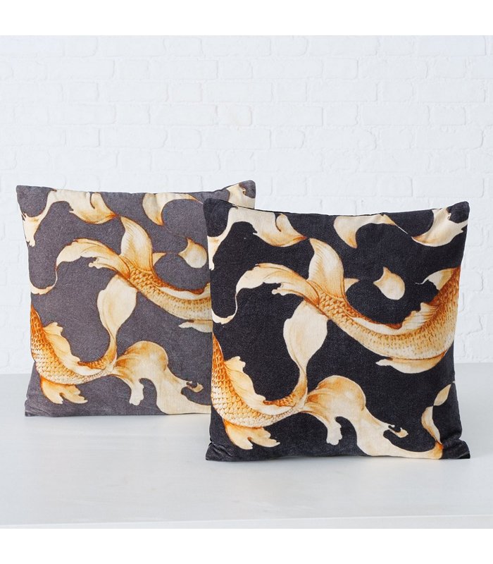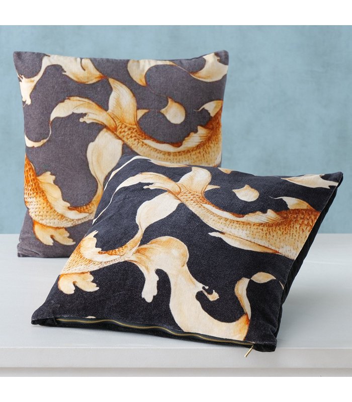 ΜΑΞΙΛΑΡΙ 2/ass ΣΧΕΔΙΟ ΨΑΡΙ 45Χ45Χ15 Koi ΜΑΥΡΟ/ΠΟΡΤΟΚΑΛΙ Cotton 100%,