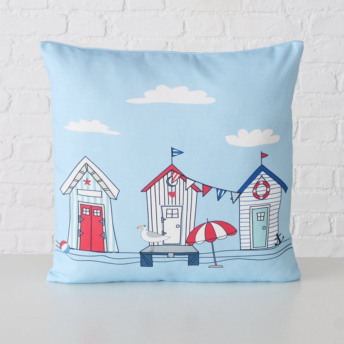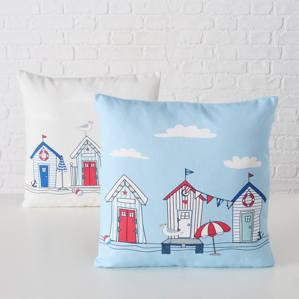 ΜΑΞΙΛΑΡΙ 2/ass ΣΧΕΔΙΟ Beachhouse ΛΕΥΚΟ ΓΑΛΑΖΙΟ 45Χ45Χ10cm Polyester 100%