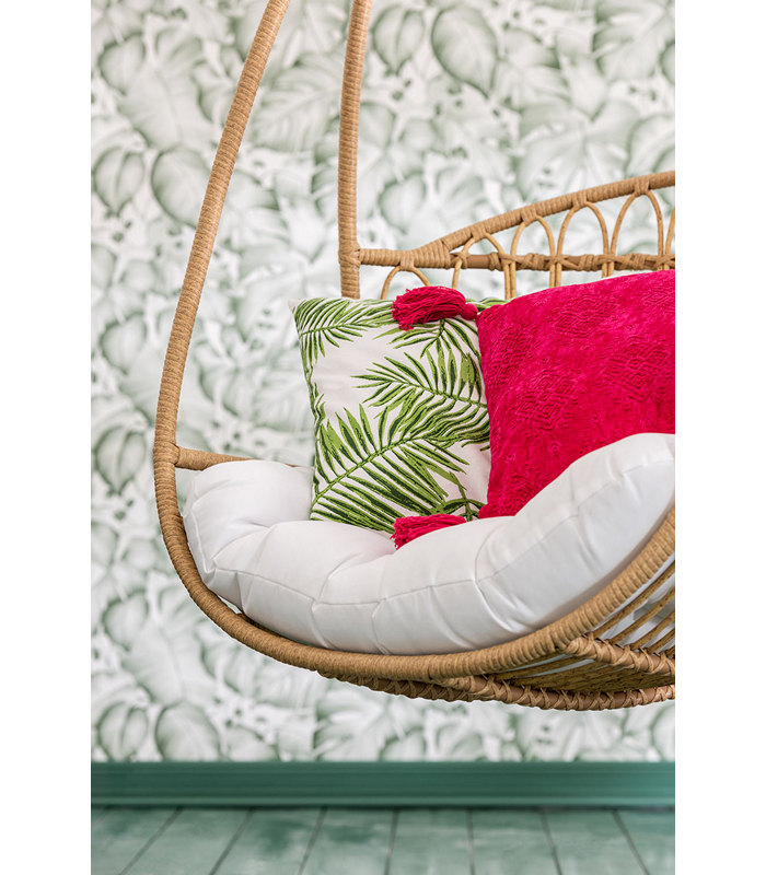 ΜΑΞΙΛΑΡΙ TROPICAL ΜΕ ΦΥΛΛΑ ΒΑΜΒΑΚΕΡΟ ΛΕΥΚΟ/ΠΡΑΣΙΝΟ ASS3 (45x45x10cm)