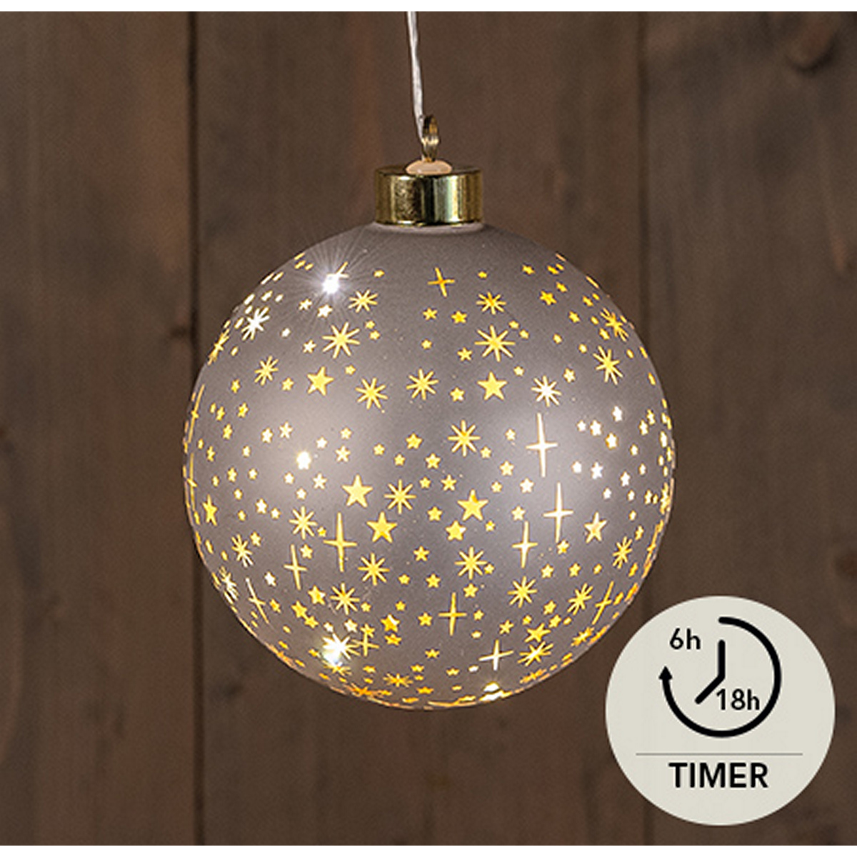 ΜΠΑΛΑ ΓΥΑΛΙΝΗ ΣΑΜΠΑΝΙ ΜΑΤ ΜΕ ΧΡΥΣΑ ΕΣΩΤΕΡΙΚΑ ΑΣΤΕΡΙΑ 12CM 10LED ΘΕΡΜΟ ΛΕΥΚΟ 2XAAA ON/OFF/TIMER 6H ΜΠΑΤΑΡΙΑΣ