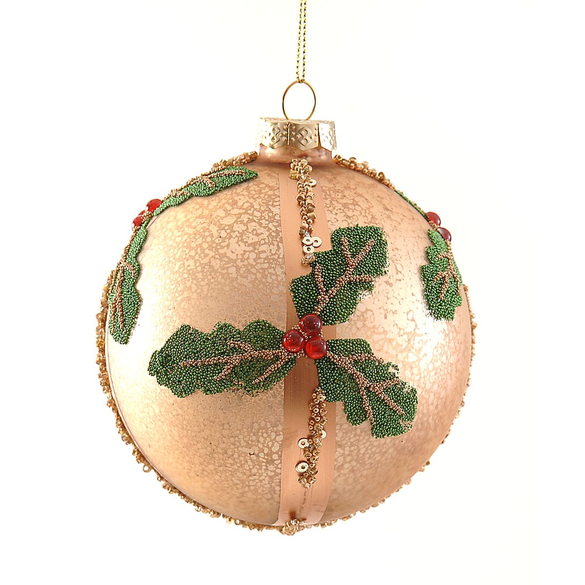 ΜΠΑΛΑ ΧΡΥΣΗ ΜΕ ΓΚΙ ΦΥΛΛΑ ΠΡΑΣΙΝΑ 10cm ΓΥΑΛΙ