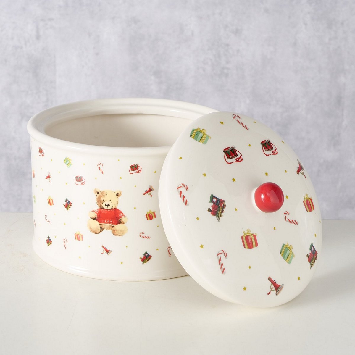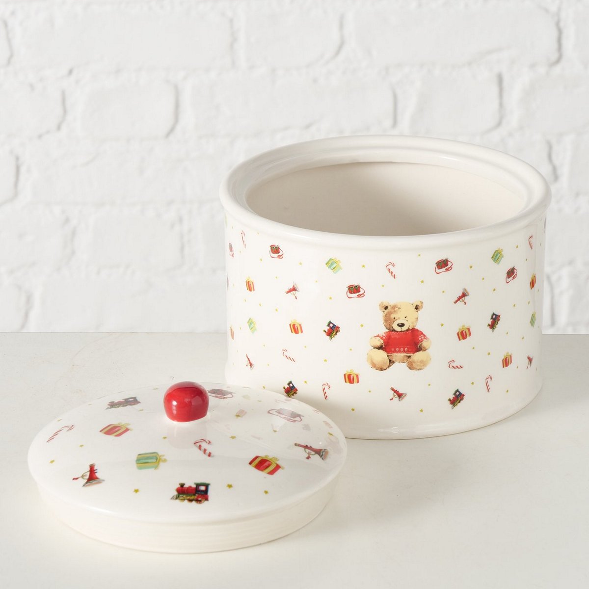 ΜΠΙΣΚΟΤΙΕΡΑ ΑΡΚΟΥΔΑΚΙΑ Bailey ΚΑΦΕ ΚΟΚΚΙΝΟ ΛΕΥΚΟ Dishwasher proof, H15cm D18cm ΚΕΡΑΜΙΚΟ