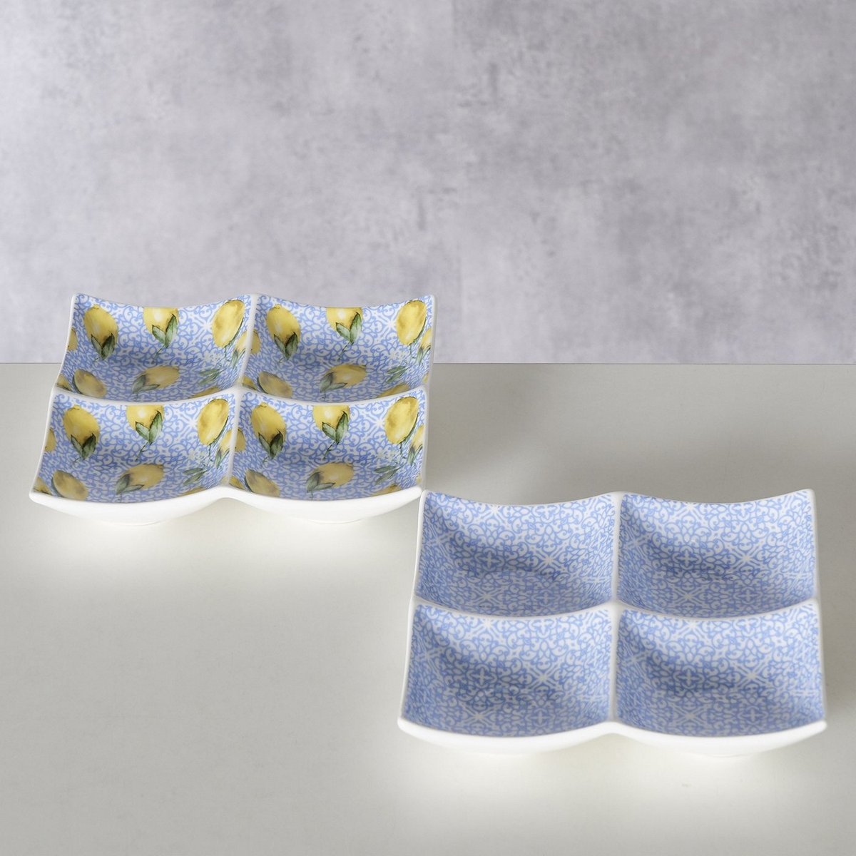 ΟΡΝΤΕΡΒΙΕΡΑ ΜΕ 4 ΘΕΣΕΙΣ 2/ass ΣΧΕΔΙΟ Capri ΛΕΜΟΝΙΑ 2/ass ΜΠΛΕ ΛΕΥΚΟ ΚΙΤΡΙΝΟ Dishwasher proof 17X17X3cm New Bone ΠΟΡΣΕΛΑΝΗ