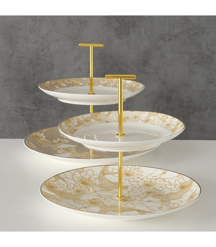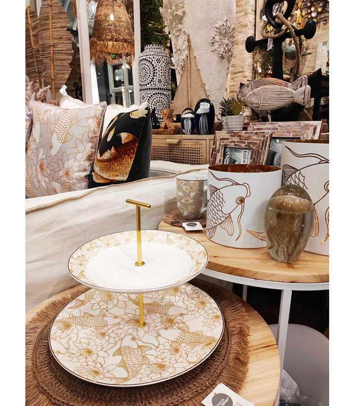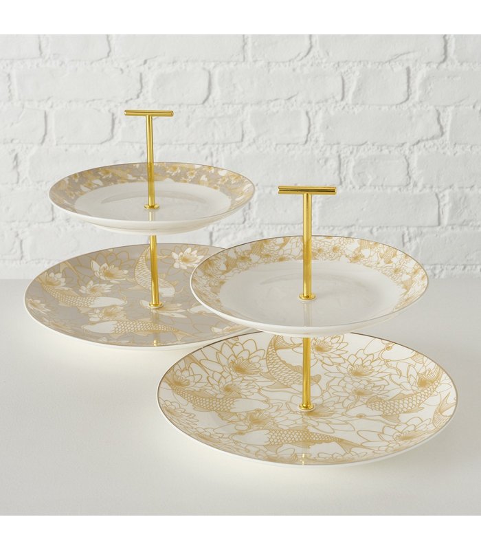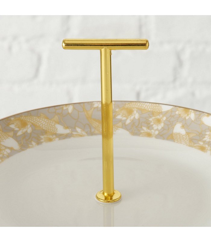 ΠΙΑΤΕΛΑ ΔΙΠΛΗ 2/ass ΣΧΕΔΙΟ ΨΑΡΙΑ Lotus 330ml ΓΚΡΙ/ΧΡΥΣΟ D26,50cm New Bone ΠΟΡΣΕΛΑΝΗ