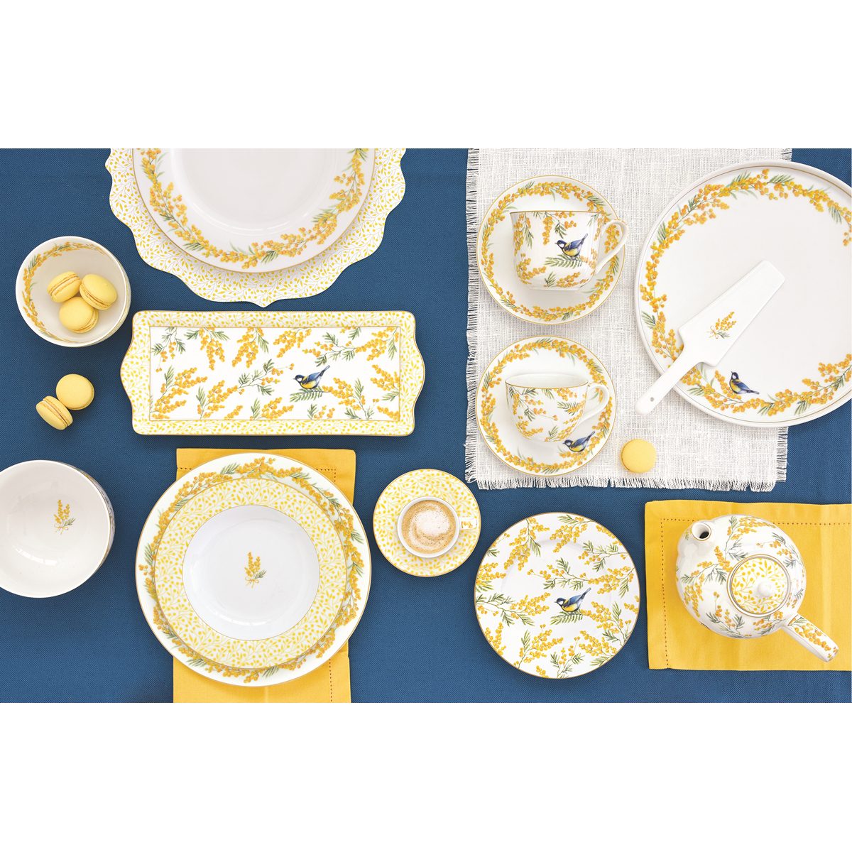 ΠΙΑΤΕΛΑ ΜΕ ΚΙΤΡΙΝΑ ΛΟΥΛΟΥΔΙΑ ΚΑΙ ΠΟΥΛΙ ΜΠΛΕ ΟΡΘΟΓΩΝΙΑ MIMOSA 35X15cm ΠΟΡΣΕΛΑΝΗ