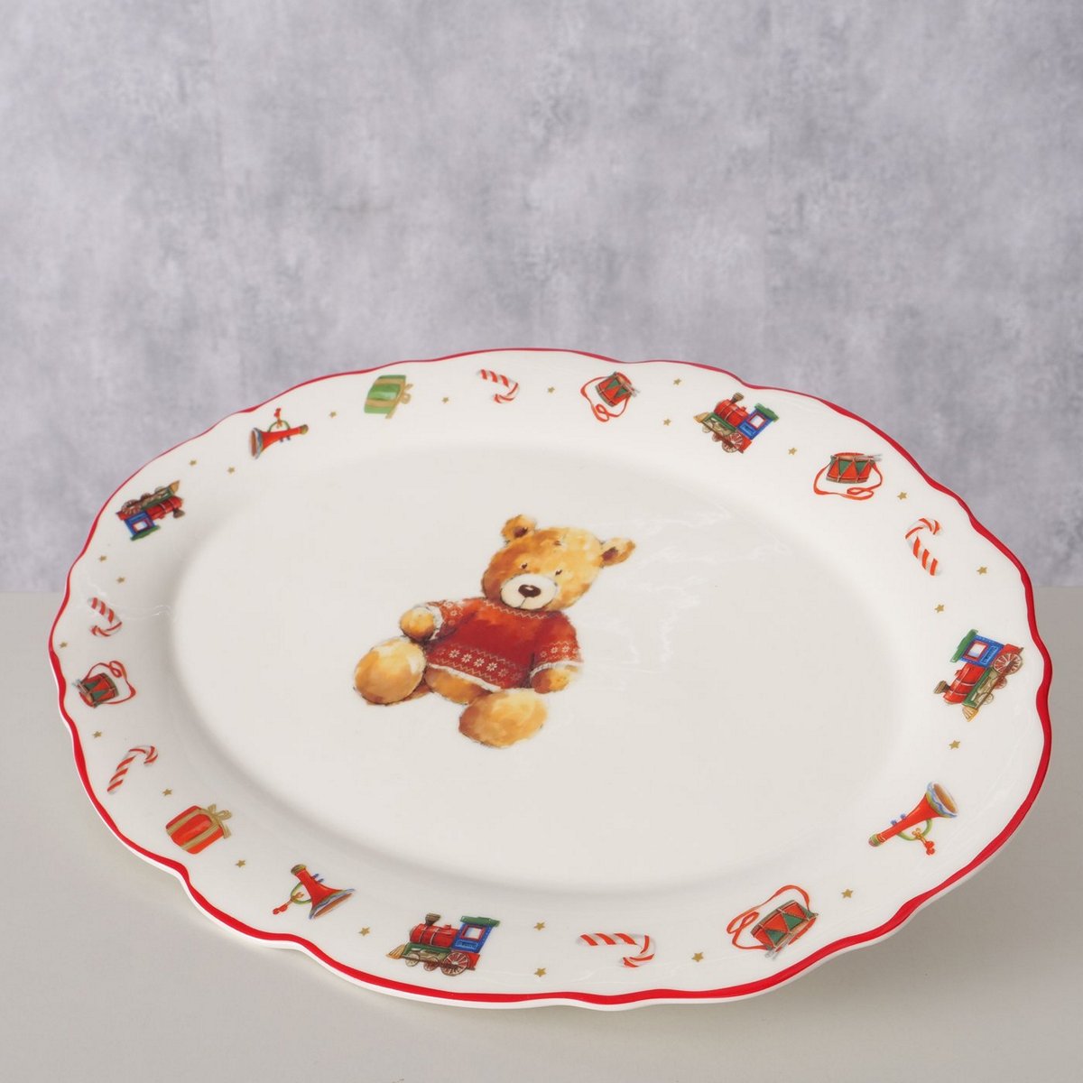 ΠΙΑΤΕΛΑ ΟΒΑΛ ΑΡΚΟΥΔΑΚΙΑ Bailey ΚΑΦΕ ΚΟΚΚΙΝΟ ΛΕΥΚΟ 31X21,2X2cm New Bone ΠΟΡΣΕΛΑΝΗ