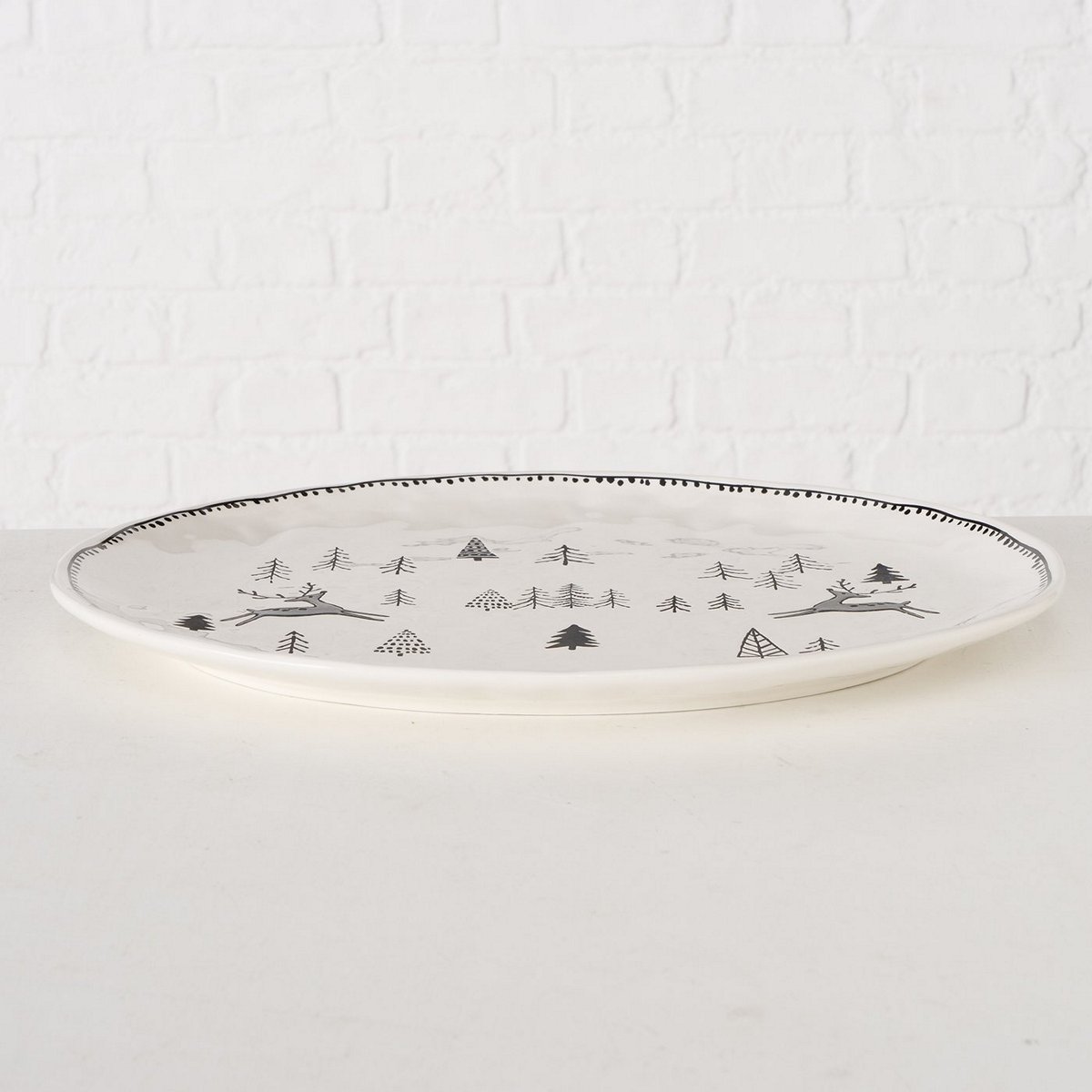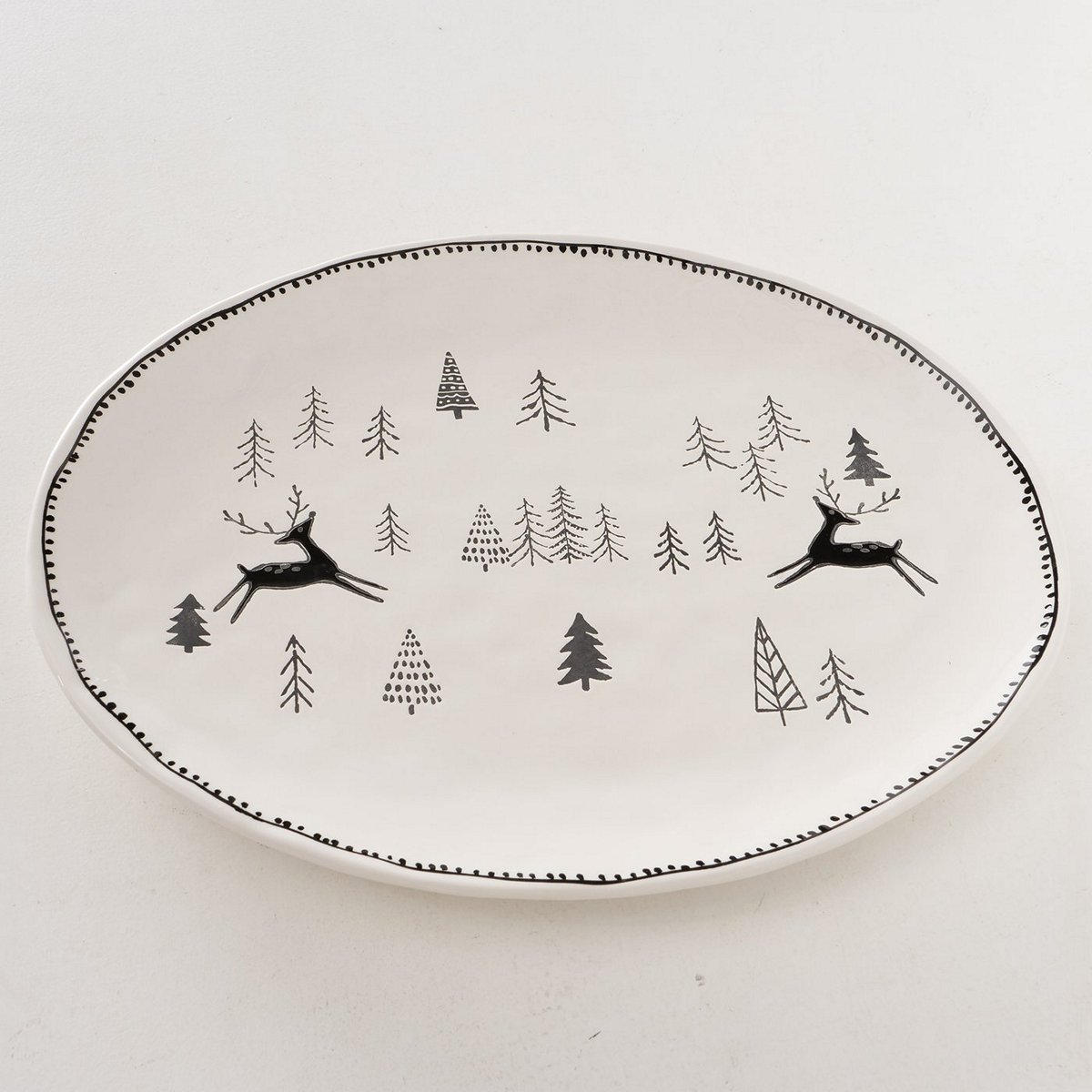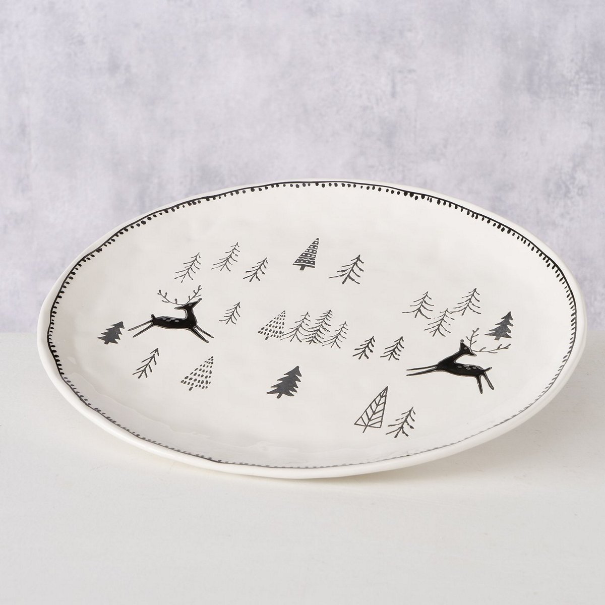 ΠΙΑΤΕΛΑ ΟΒΑΛ Madalyn ΣΧΕΔΙΟ ΔΕΝΔΡΑ/ΕΛΑΦΙ ΑΣΠΡΟ/ΜΑΥΡΟ L39 W32 D23cm ΔΟΛΟΜΙΤΗΣ
