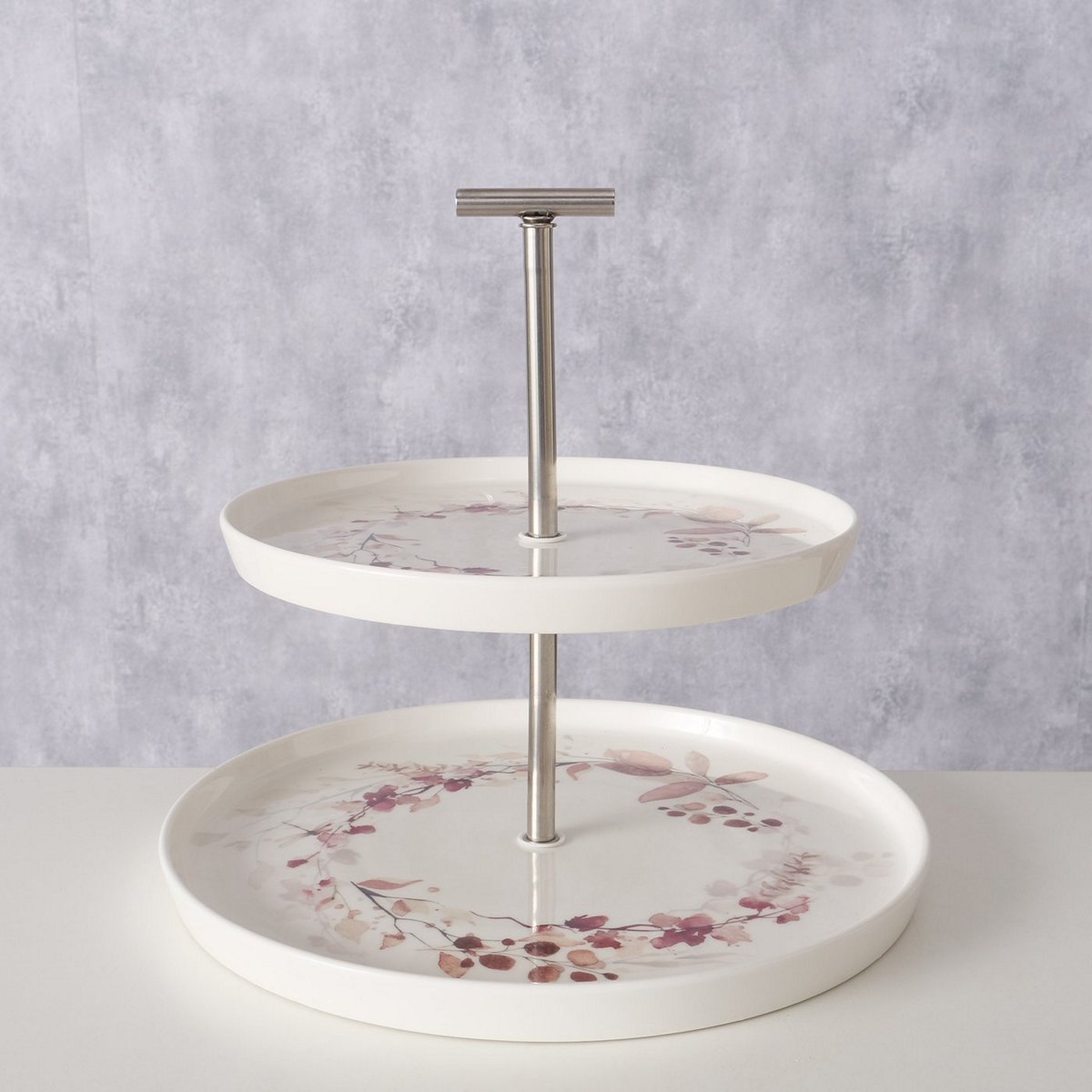 ΠΙΑΤΕΛΑ 2ΠΛΗ Bernada ΣΧΕΔΙΟ ΦΥΛΛΑ ΚΑΦΕ ΡΟΖ H22cm D26cm Stainless steel, New Bone ΠΟΡΣΕΛΑΝΗ