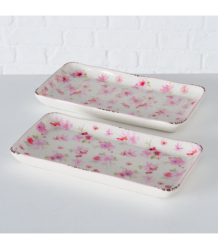 ΠΙΑΤΕΛΑ 2/ASS Rosella ΣΧΕΔΙΟ ΑΝΘΗ ΠΑΡΑΛ/ΜΗ L26cm W13cm ΛΕΥΚΟ/ΡΟΖ ΚΕΡΑΜΙΚΟ 20-96-905
