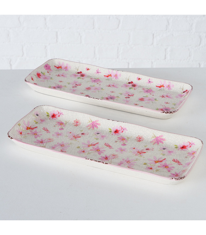 ΠΙΑΤΕΛΑ 2/ASS Rosella ΣΧΕΔΙΟ ΑΝΘΗ ΠΑΡΑΛ/ΜΗ L36cm W15cm ΛΕΥΚΟ/ΡΟΖ ΚΕΡΑΜΙΚΟ 20-96-905