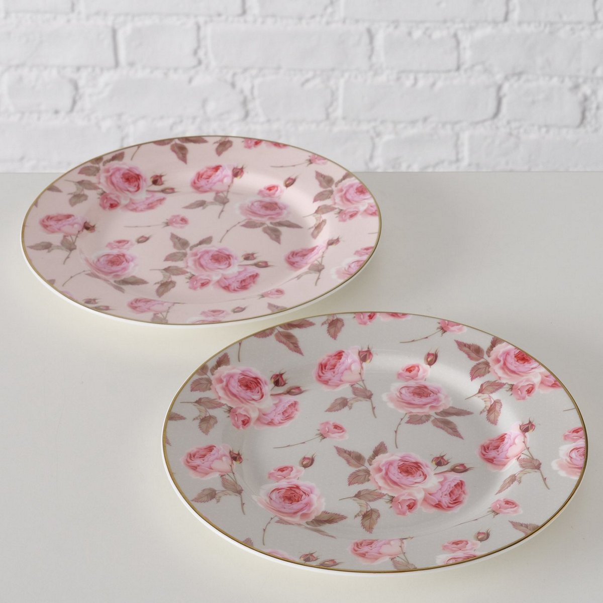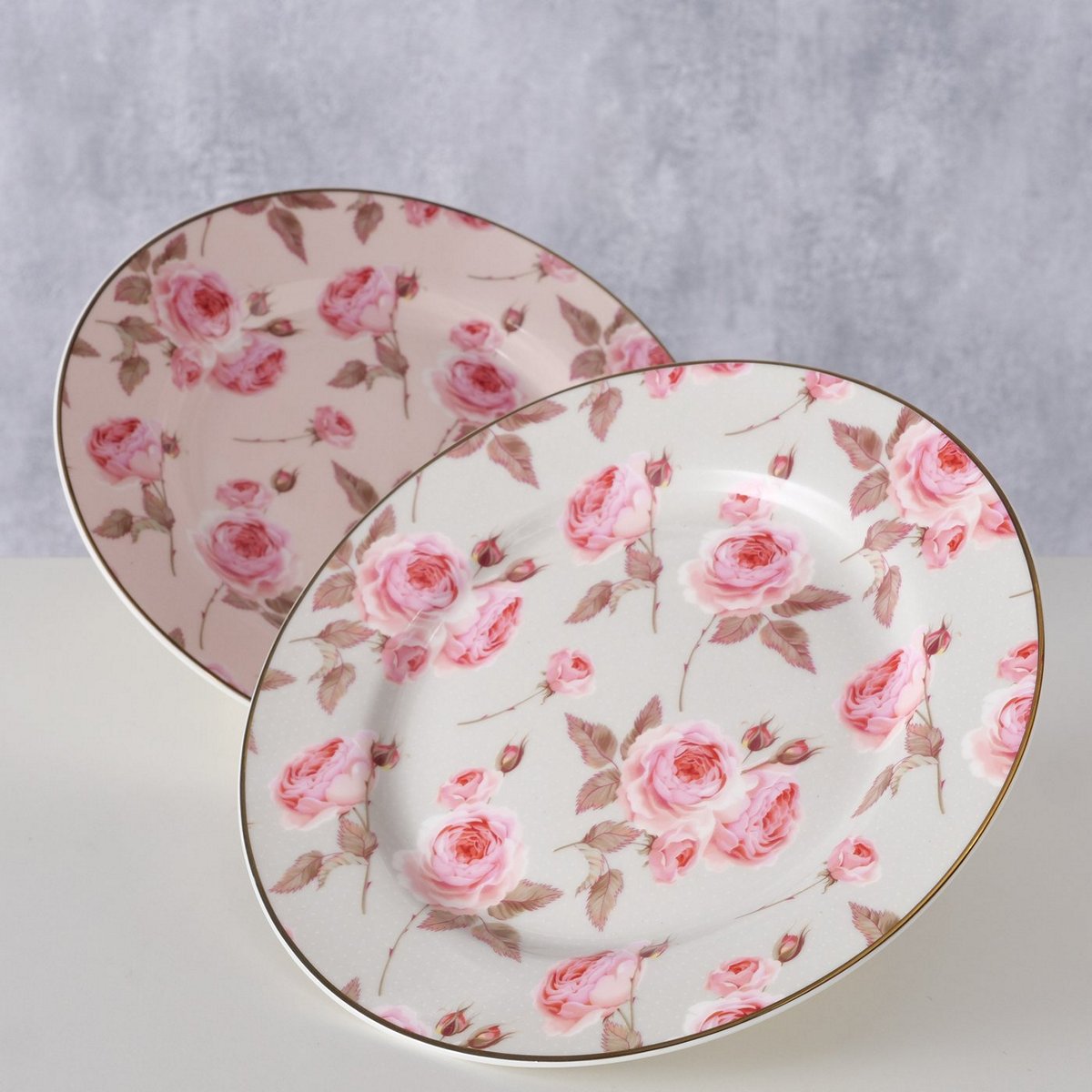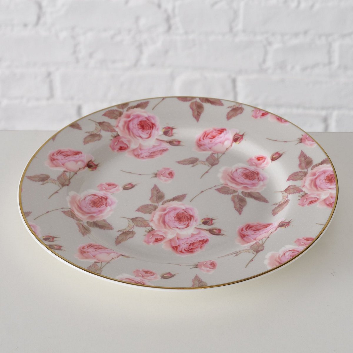 ΠΙΑΤΟ 2/ass ΣΧΕΔΙΟ Roselia Λουλουδάτο ΡΟΖ/ΓΚΡΙ d20cm New Bone ΠΟΡΣΕΛΑΝΗ