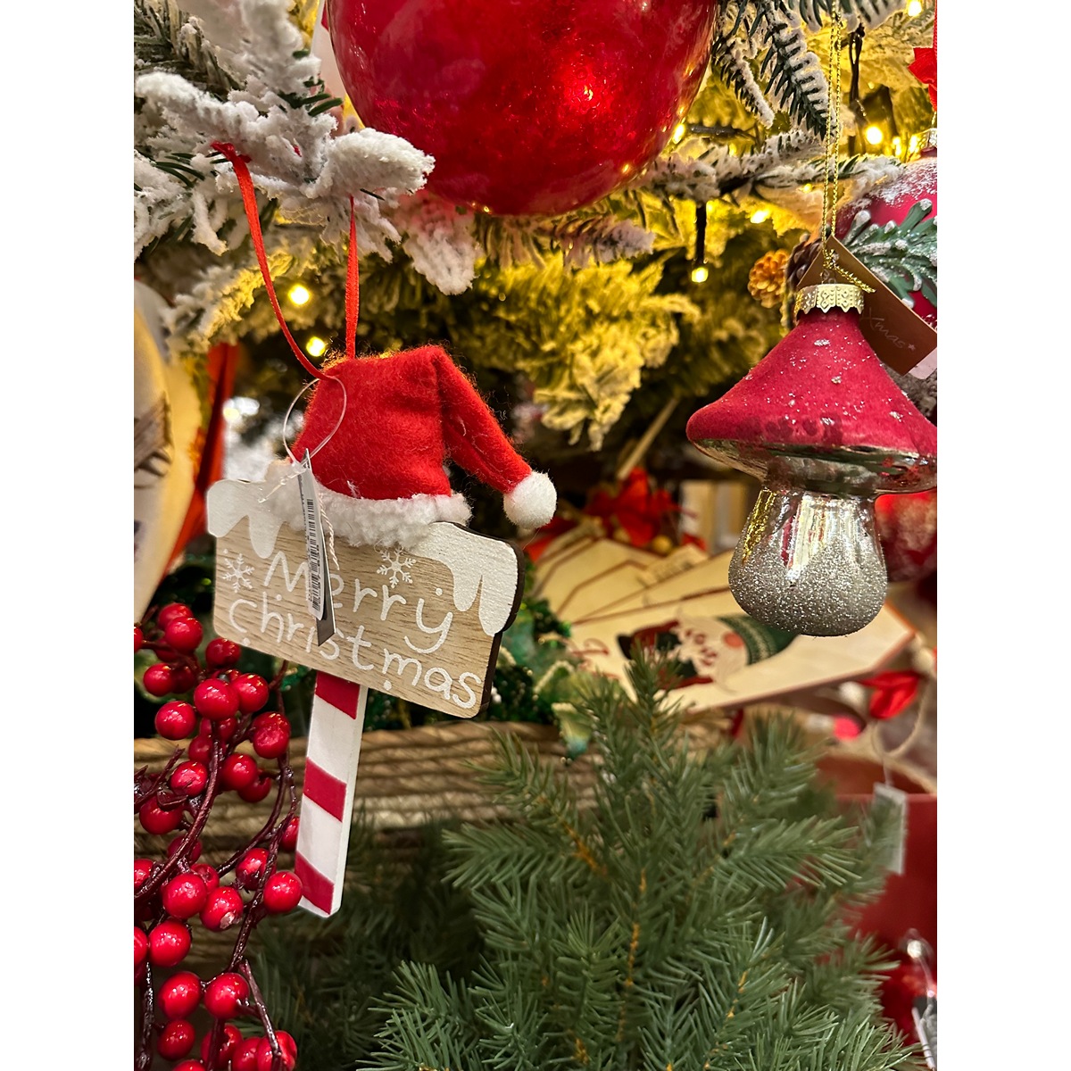 ΠΙΝΑΚΙΔΑ ΚΡΕΜΑΣΤΗ 20cm MERRY CHRISTMAS ΚΑΙ ΣΚΟΥΦΟ ΑΙ-ΒΑΣΙΛΗ