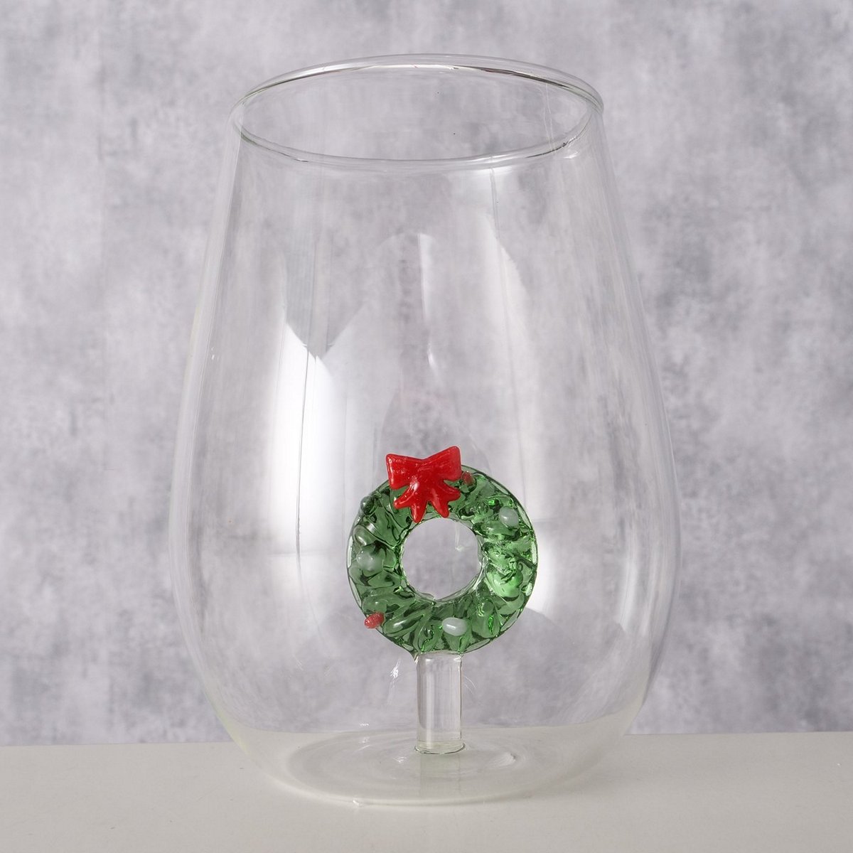 ΠΟΤΗΡΙ ΝΕΡΟΥ ΜΕ ΠΡΑΣΙΝΟ ΧΡΙΣΤΟΥΓ ΣΤΕΦΑΝΙ Wreathy H12cm ΔΙΑΦΑΝΟ ΓΥΑΛΙ