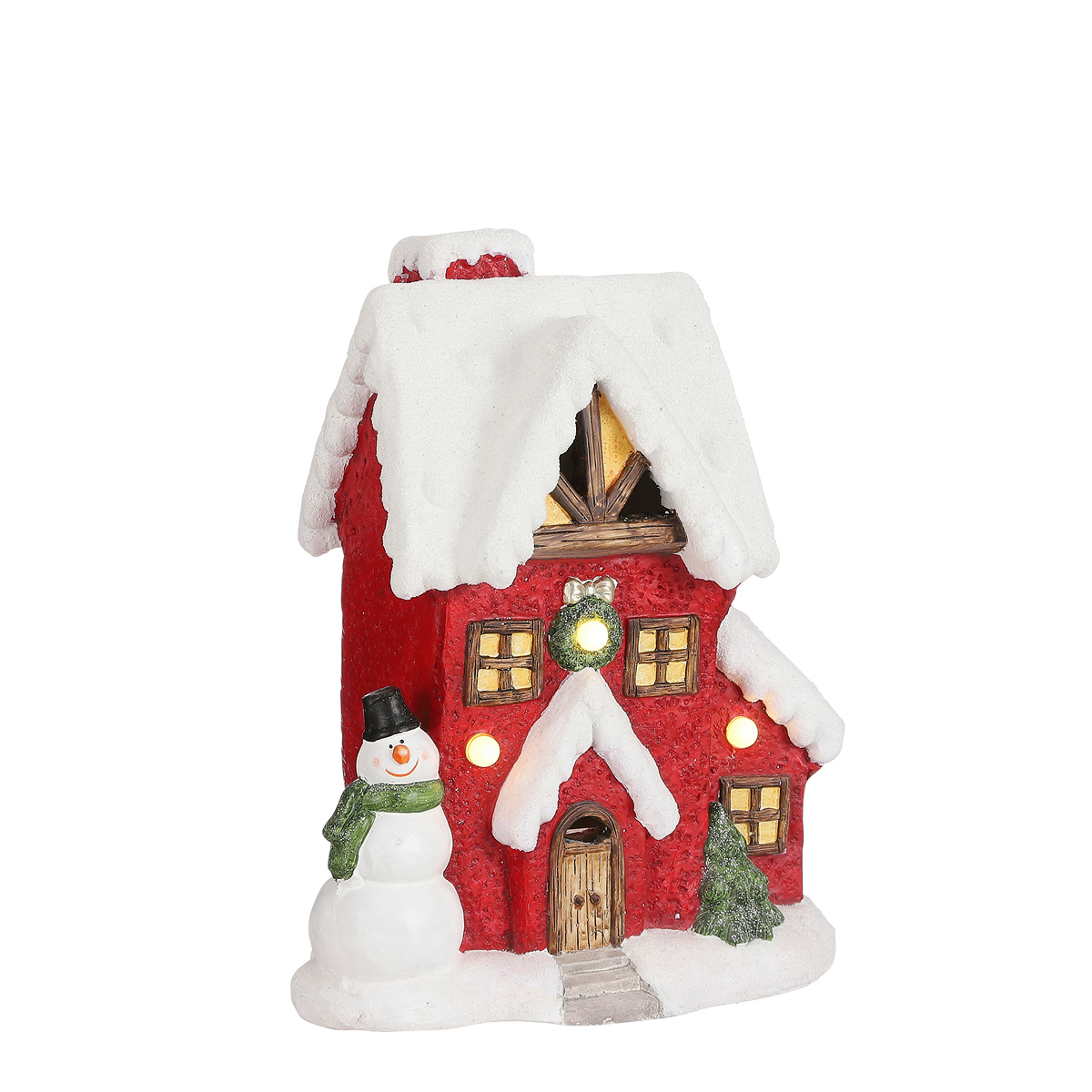 ΣΠΙΤΙ LED ΚΟΚΚΙΝΟ ME ΧΙΟΝΑΝΘΡΩΠΟ battery operated – l28,5xw20xh37cm polyresin