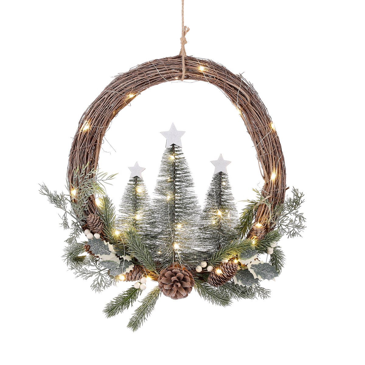 ΣΤΕΦΑΝΙ ΜΕ ΠΕΥΚΟ Κ ΔΕΝΔΡΑΚΙΑ ΠΡΑΣΙΝΟ 40led battery operated – w10 D42cm willow
