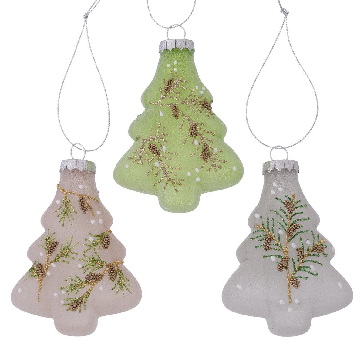 ΣΤΟΛΙΔΙ 3/ass ΔΕΝΤΡΟ ΛΕΥΚΟ ΕΚΡΟΥ ΠΡΑΣΙΝΟ Mikos L 7,5cm H11cm Glitter ΓΥΑΛΙ