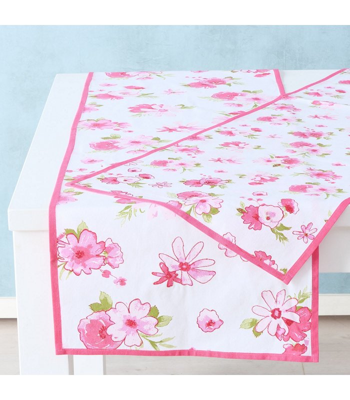 ΤΡΑΒΕΡΣΑ 2/ass ΣΧΕΔΙΟ ΑΝΘΗ Rosella ΛΕΥΚΟ/ΡΟΖ L140cm cotton