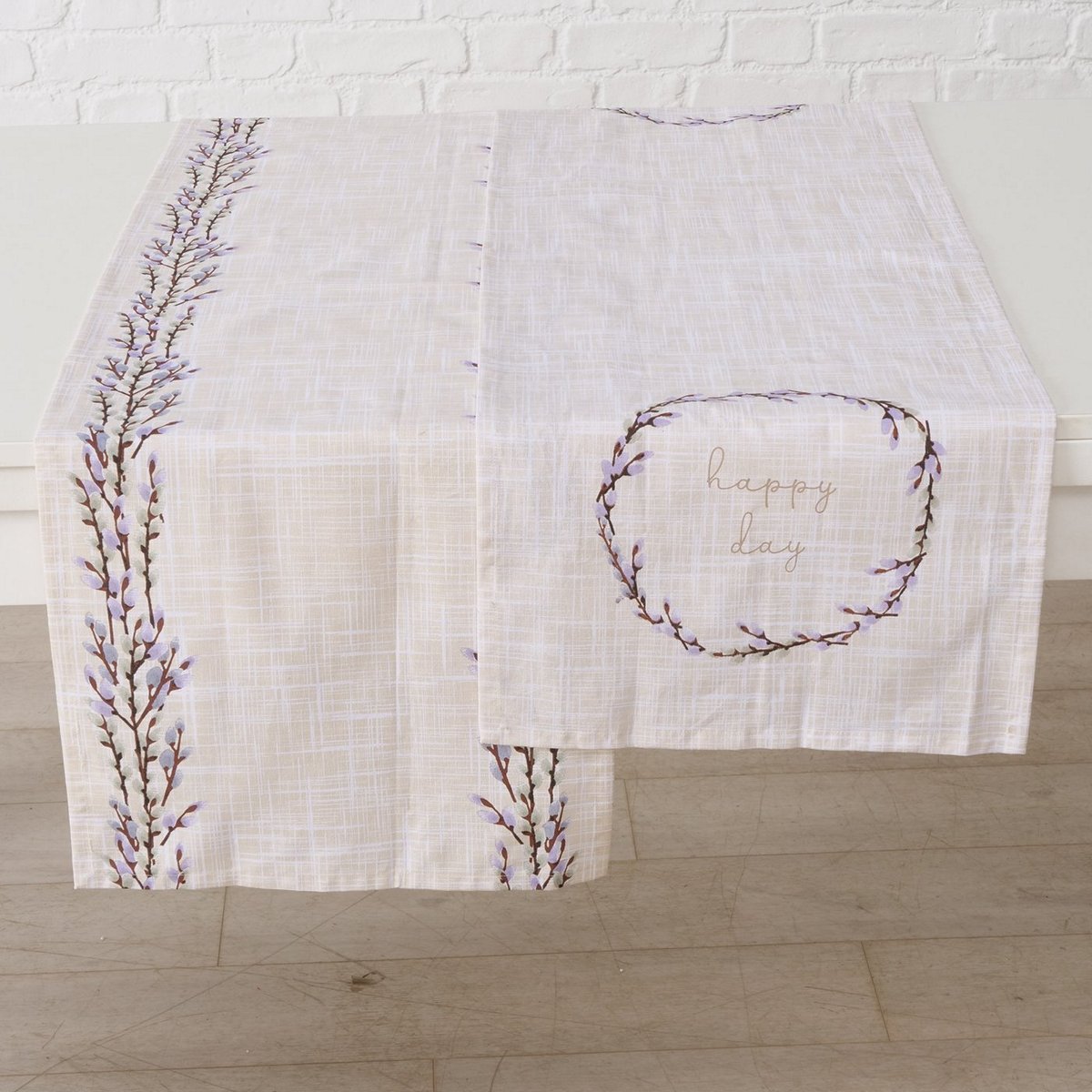ΤΡΑΒΕΡΣΑ 2/ass Salix Heart Λουλουδάτο ΜΩΒ Cotton ΕΚΡΟΥ 140x40cm