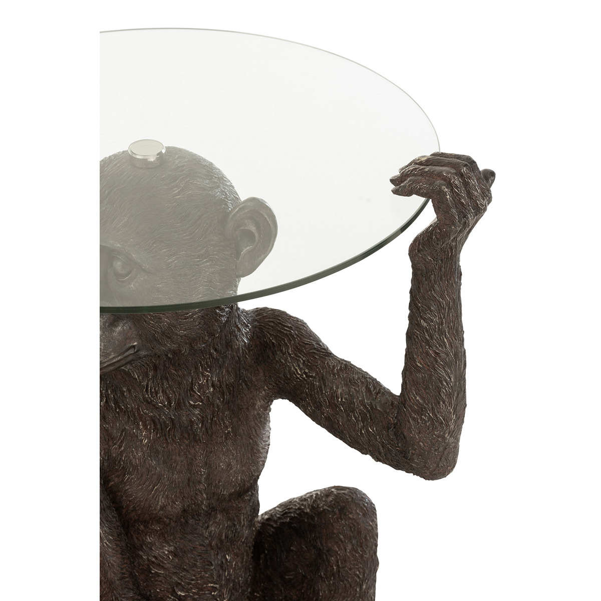 ΤΡΑΠΕΖΙ ΓΥΑΛΙΝΟ ΜΕ ΒΑΣΗ ΠΙΘΗΚΟ ΣΚΟΥΡΟ ΚΑΦΕ (52x48x62cm)